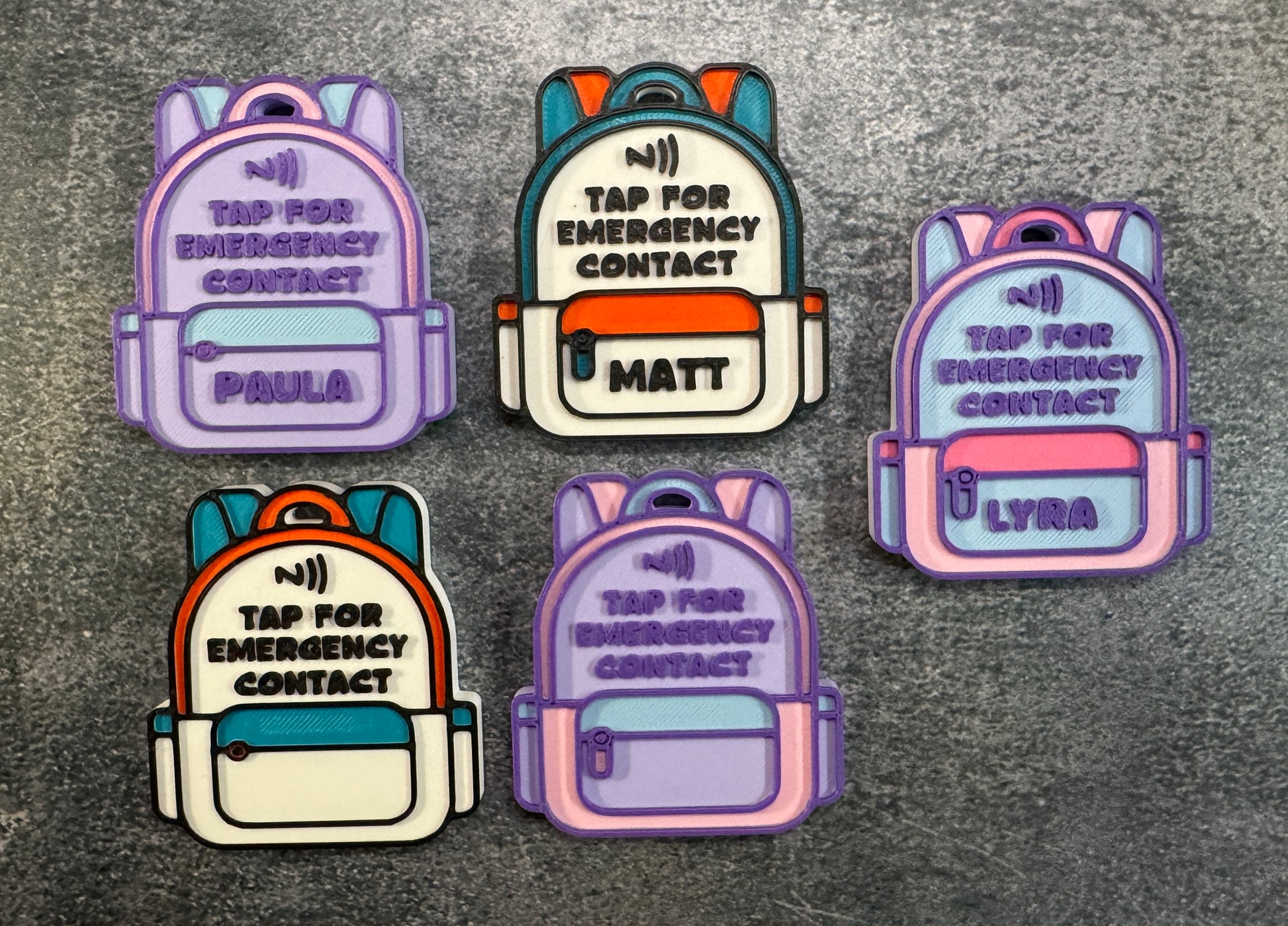 Cute Personalized Kids back to school Backpack NFC tag for emergency contact information.